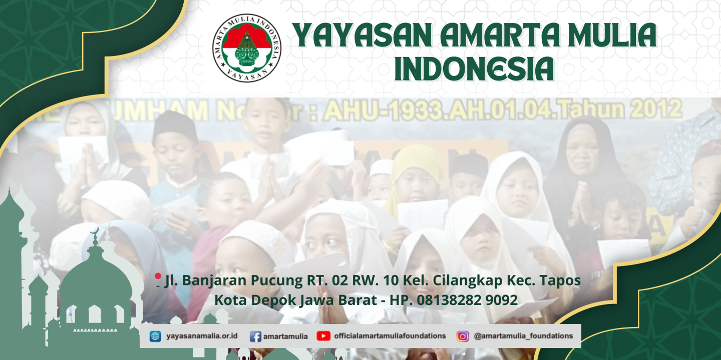 Yayasan Amarta Mulia Indonesia Kota Depok Jawa Barat bergerak di bidang Sosial Keagamaan dan Kemanusiaan di Banjaran Pucung Rt. 02/10 Kel. Cilangkap Kec. Tapos Kota Depok.
